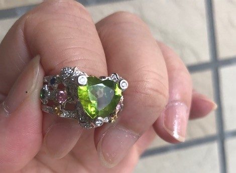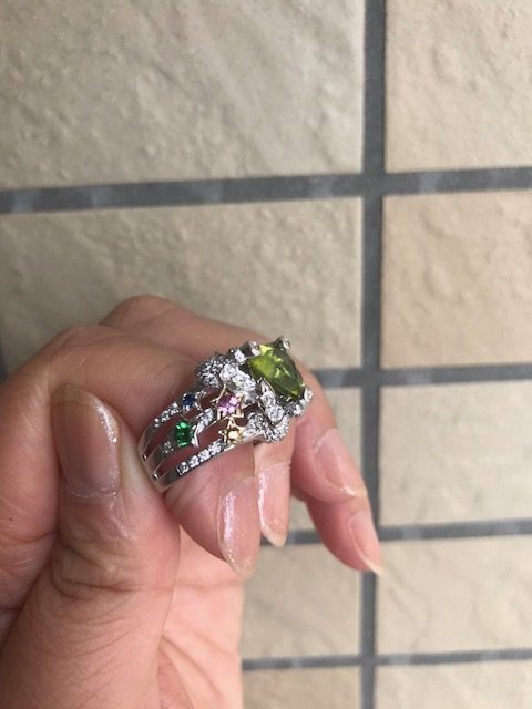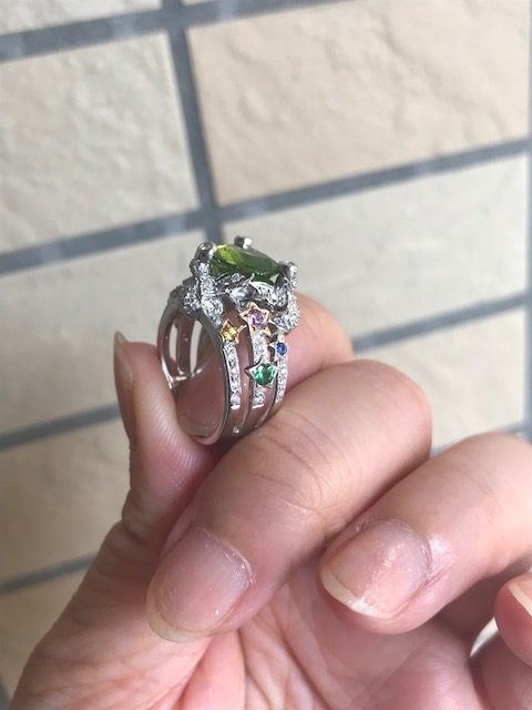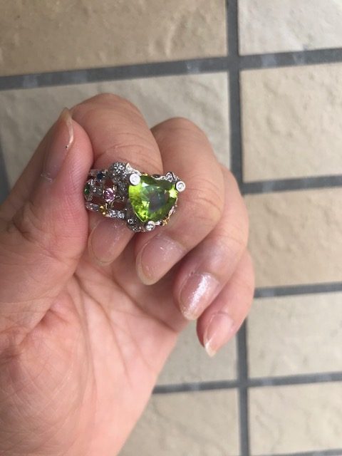 あるジュエリーデザインコンテストのプレス賞審査員を務めさせていただきました。先日の毎日オークションで落札したペリドットリングを嵌めていたところ、同席されたプレスの方が「素敵!どこのパーティでもいけますよ!」と褒めてくださいました。嬉しくて、「オークションですよ!」「初めての落札で!」「決めてた上限額を超えちゃいけないと思って、上限の金額をフセンをカタログに貼っておいて!」とおばちゃんトークさく裂。ジュエリーを着けるヨロコビも感じたひとときでした。
